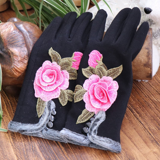 Ethnic Embroidery and Velvet Warm Embroidery Gloves Refer To Touch-screen Gloves and Velvet Cycling Five-finger Gloves