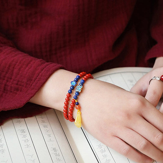 Natural Cinnabar Bracelet Multi-circle 5mm Original DIY with Beeswax Lotus Bead Bracelet