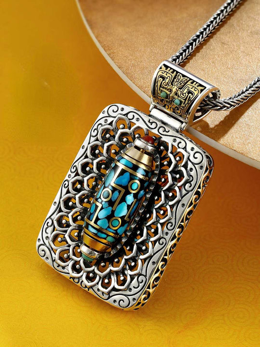 Retro Turquoise Rotating Sterling Silver Pendant Gluttonous National Necklaces