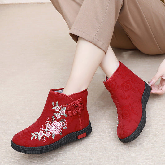 Cloth Shoes, Women's Cotton Shoes, Winter Plush Insulation, Mother's Shoes, Retro Ethnic Style Embroidered Shoes, Short Boots, Grandmother's Shoes