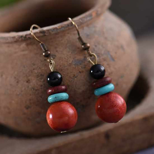 Bohemian Ethnic Style Wooden Bead Temperament Simple Retro Crystal Day Earrings