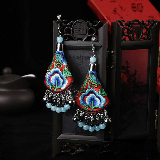 Ethnic Style Handmade Embroidered Earrings Ethnic Earrings Dance Accessories Ethnic Ornaments Peony Earrings