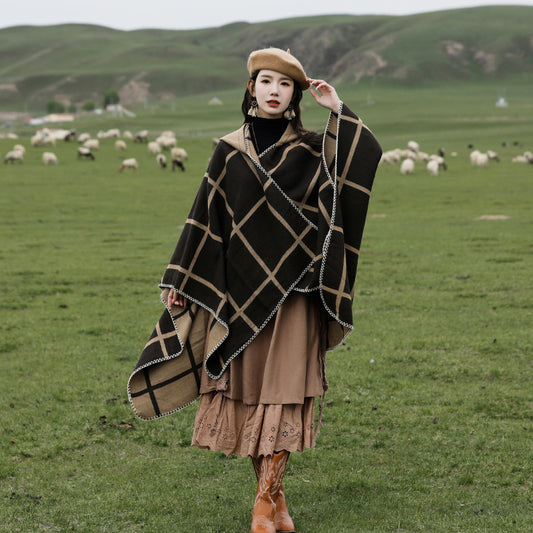 Ethnic Style Cape Shawl Women's Cape with Hat Thickened Warm Tibetan Scarf Cape Jacket
