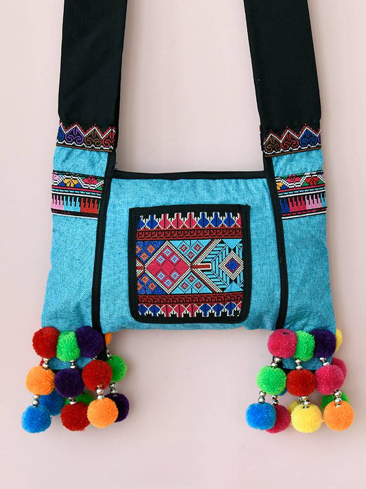 New Wide Shoulder Strap Ethnic Style Embroidered Cloth Bag Single Shoulder Messenger Bag Casual Fringed Bag Small Bag