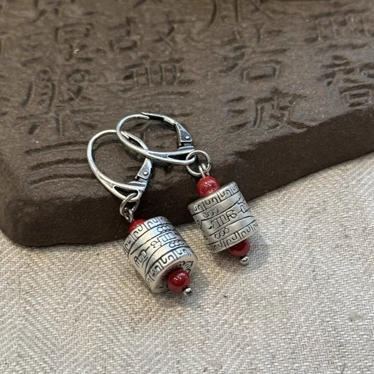 Talisman Bucket Beads 925 Silver Earrings New Tibetan Retro Old Elegant Ethnic Style Festive and Safe Versatile Earrings