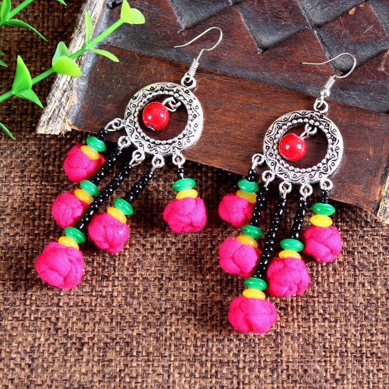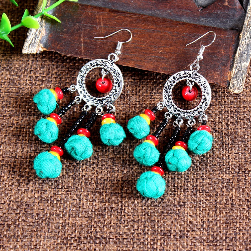 Ethnic Style Cloth Jewelry Cloth Earrings Multicolor