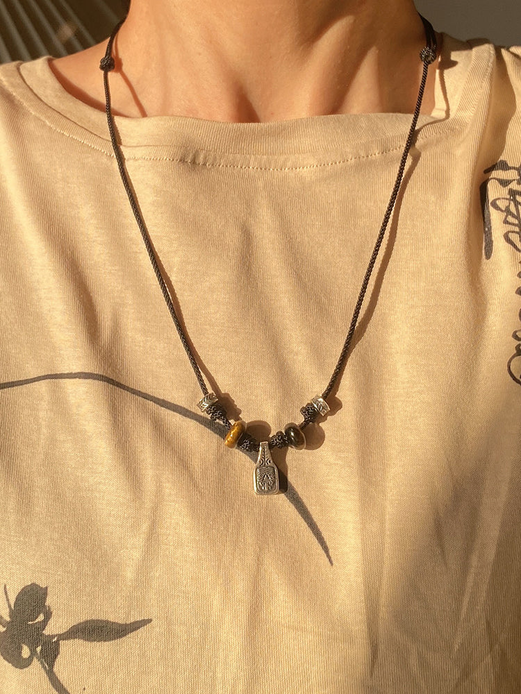 Small and high-end design sense Sterling Silver Zakiram Tibetan style Rope Couple Necklace