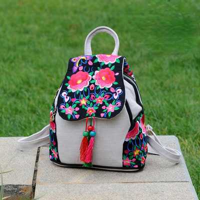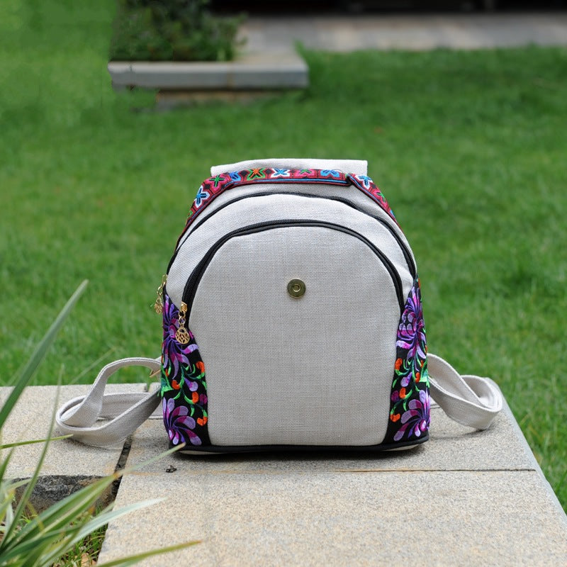 Ethnic Style New Fashion Linen Embroidery Bag Canvas Backpack Fashion Versatile Schoolbag Women's Small Backpack