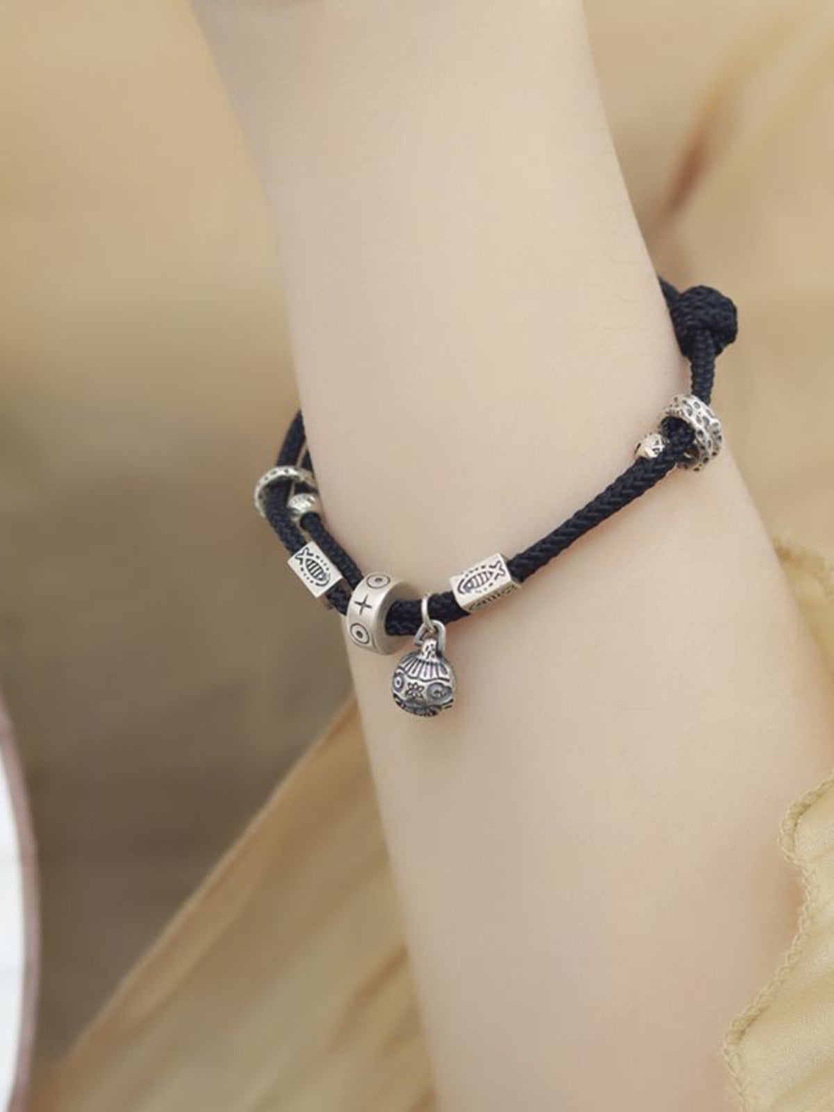 Classic Style Swallowing Gold Beast Woven Bracelet for Girls, Woven Rope Bracelet with Retro Red Rope