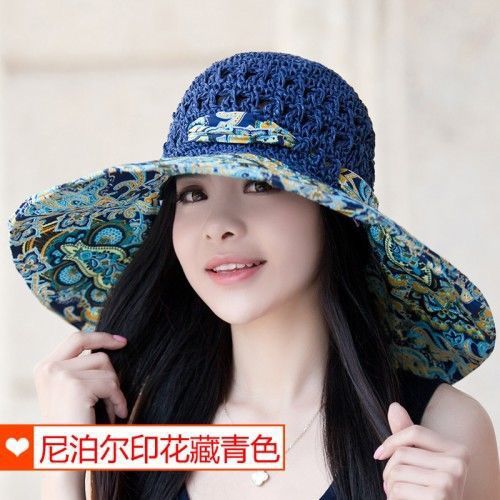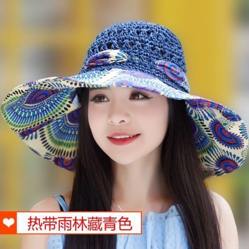 Hat women's new national style big eaves sun protection hat UV fisherman hat straw hat