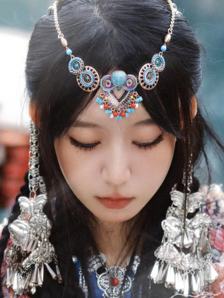 Ethnic style headgear, exotic charm necklace, Western Tibet eyebrow center and forehead chain