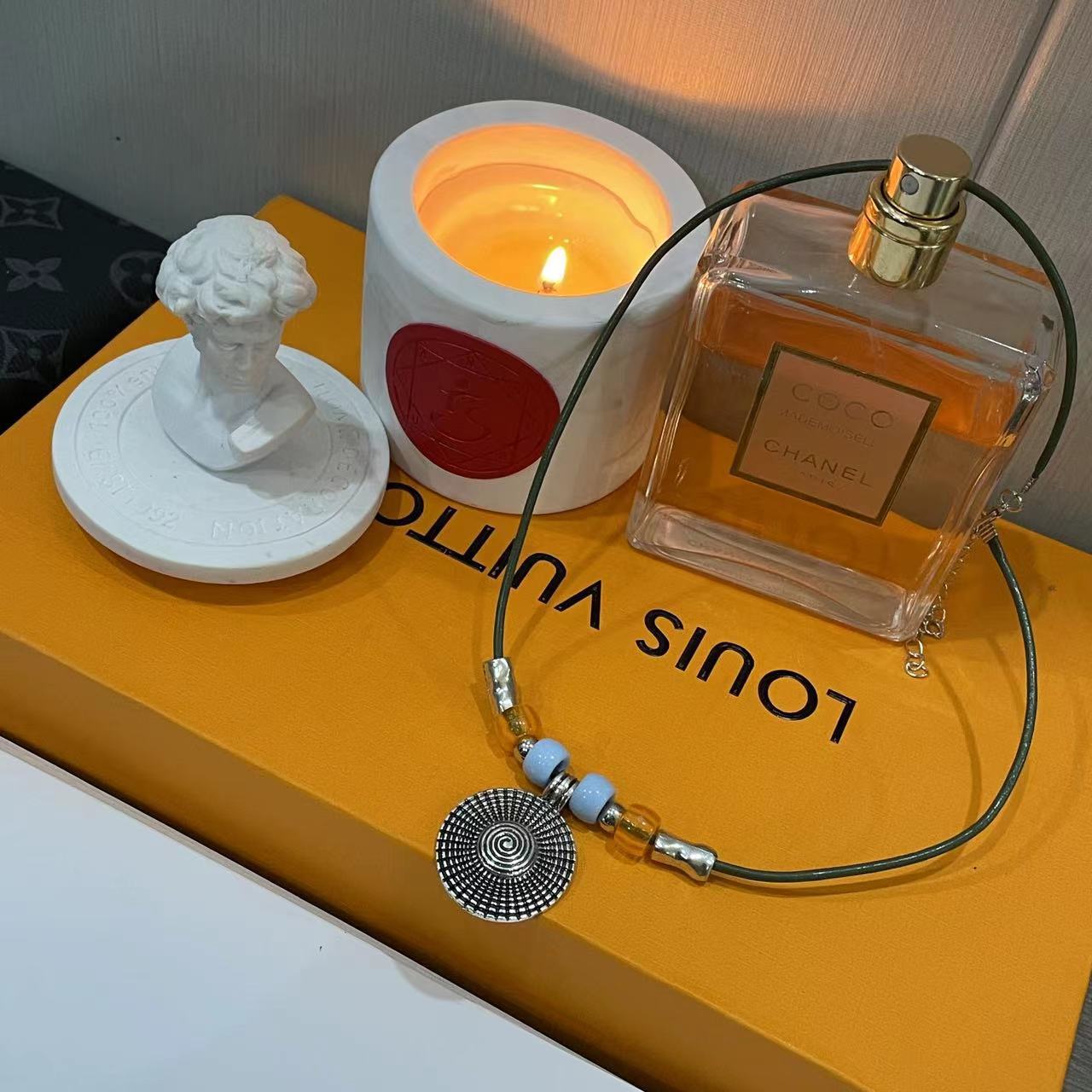 New Turquoise Round Necklace Alloy Round Brand CCB Beaded Wax Rope Chain Punk Necklace
