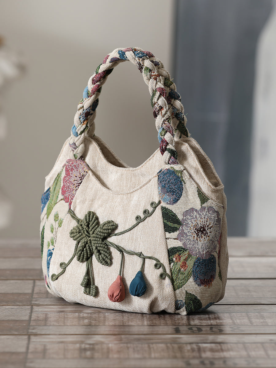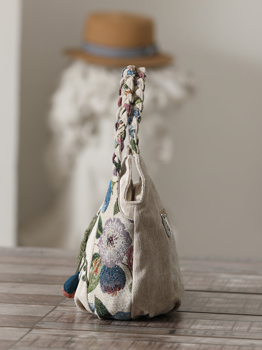 Ethnic style hand-woven canvas bag multi-compartment handbag casual style multi-compartment handbag zipper women's cloth bag