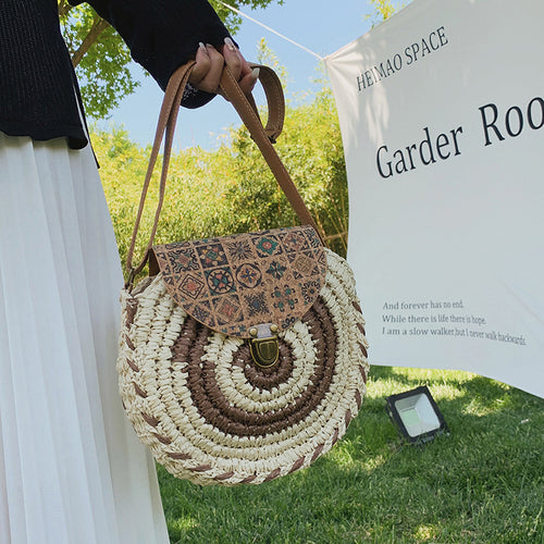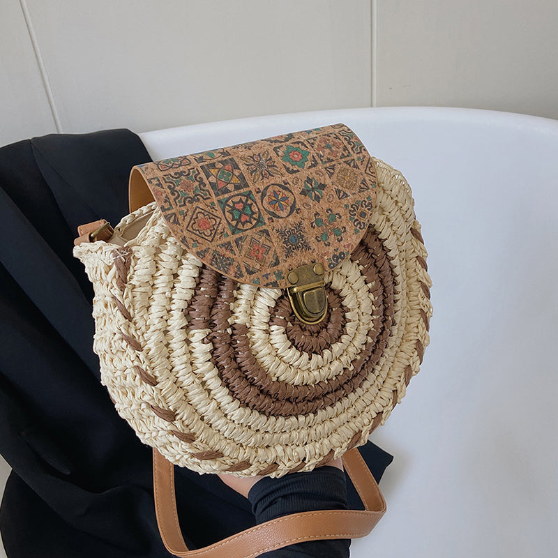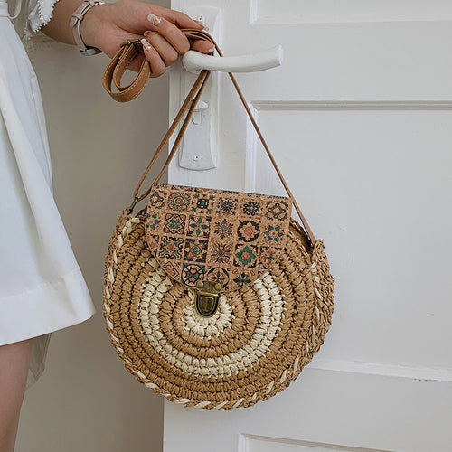 Summer Ethnic Style Woven Literature and Art Sen Series Bag for Women's Crossbody, Minority Grass Woven Large Capacity Round Cake Bag