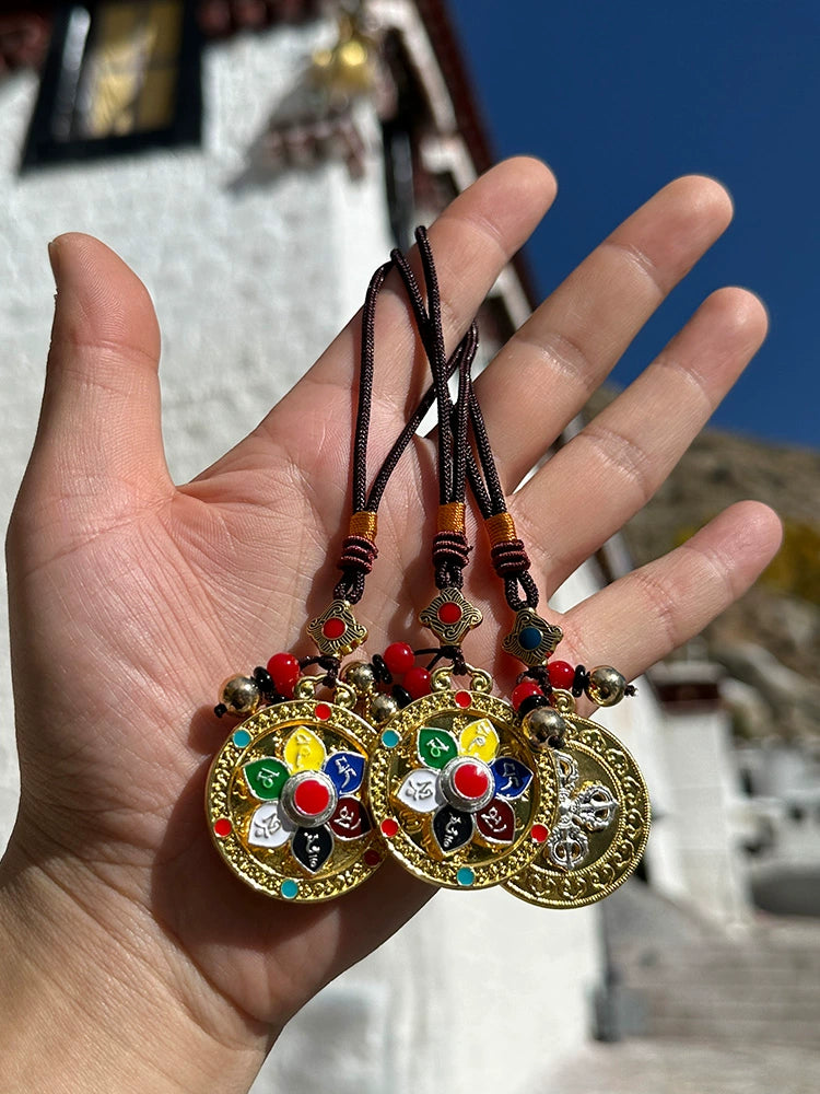 Tibetan Folk Talisman Ornament Colorful six-character mantra pendant Natal year keychain keychain