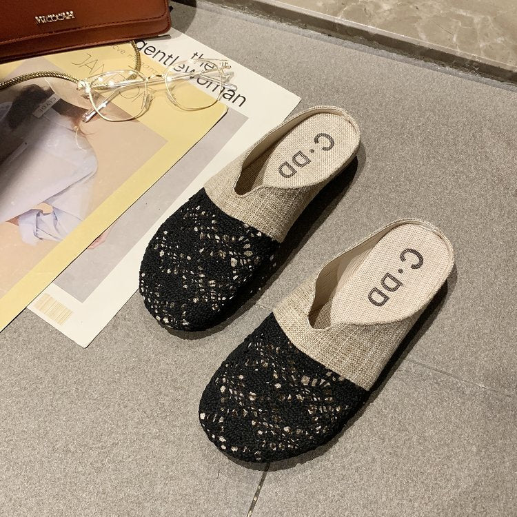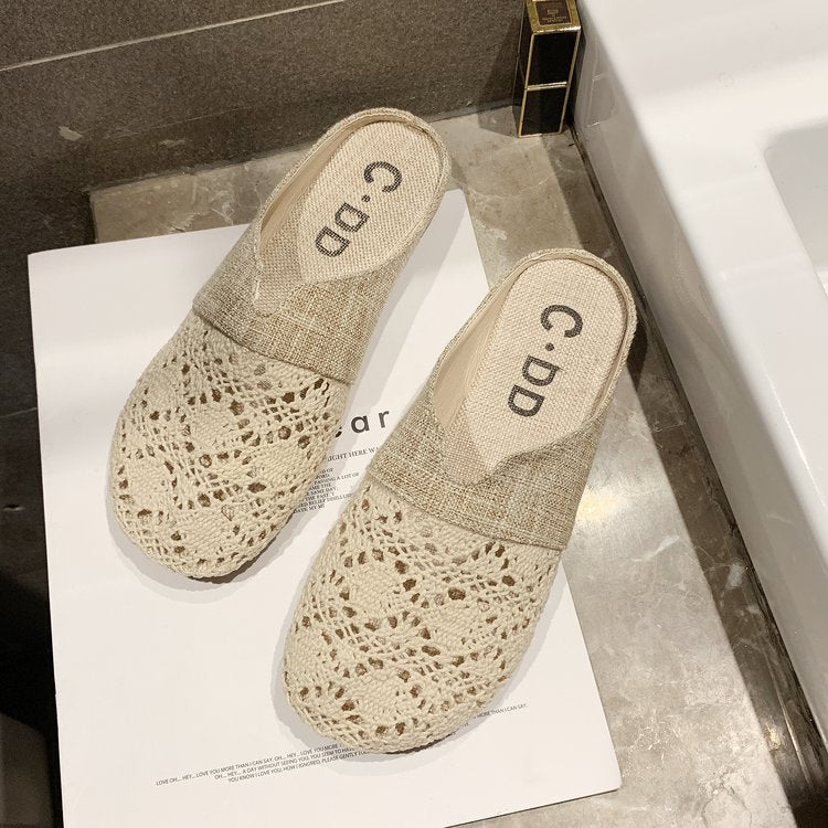 Baotou slippers women's new summer fashion outerwear mesh flat bottomless lazy sandals