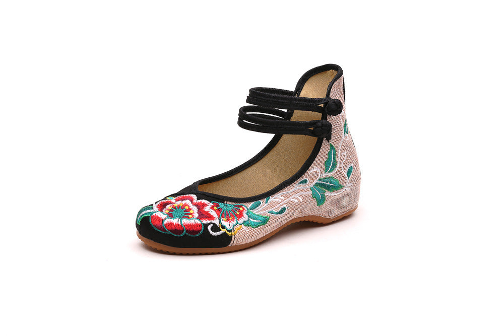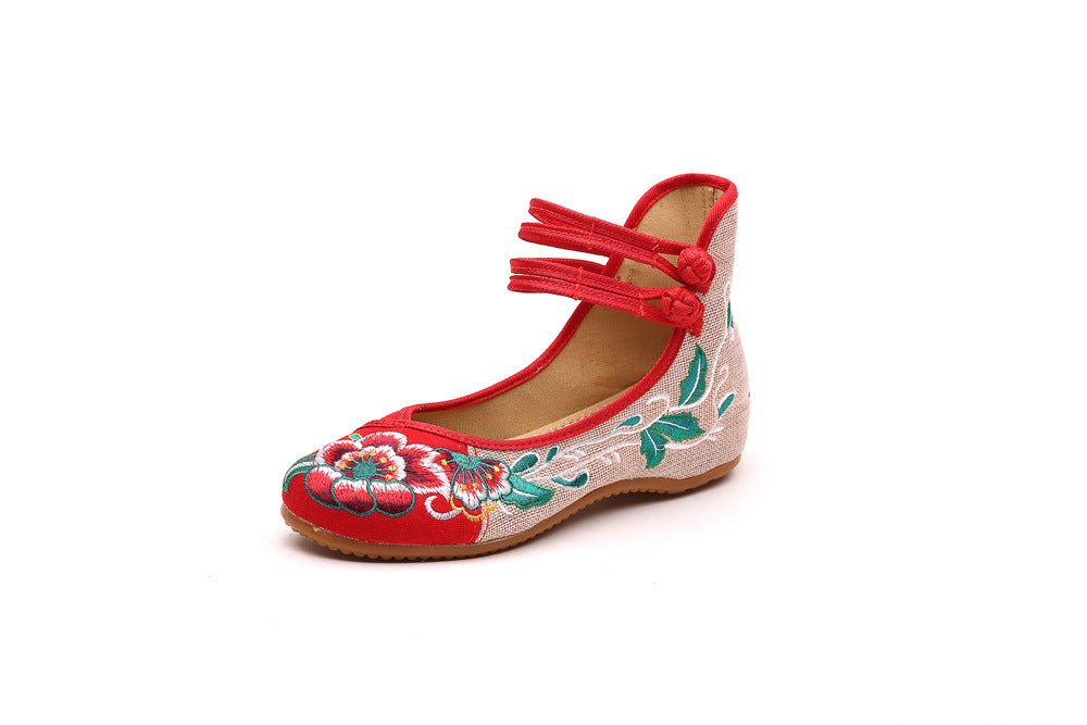 Ethnic style vintage disc buckle embroidered cloth shoes spring and autumn flax round toe women's single shoes