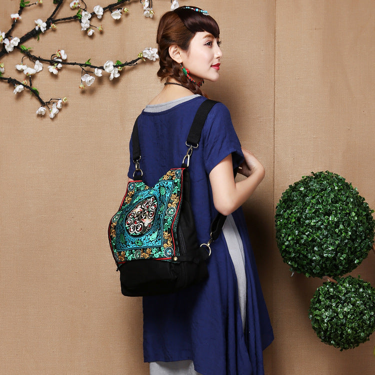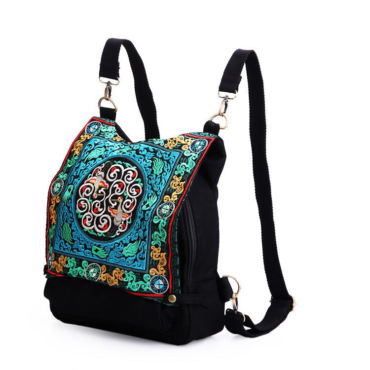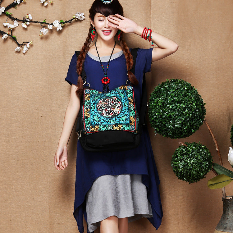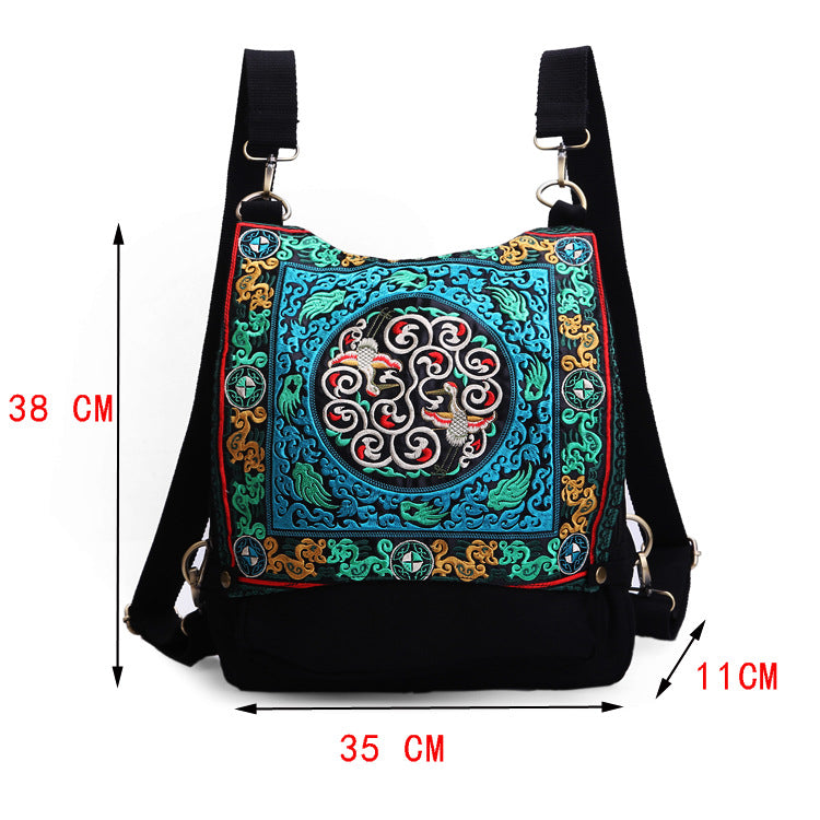 New embroidery versatile national style canvas retro Travel Backpack student schoolbag women's bag