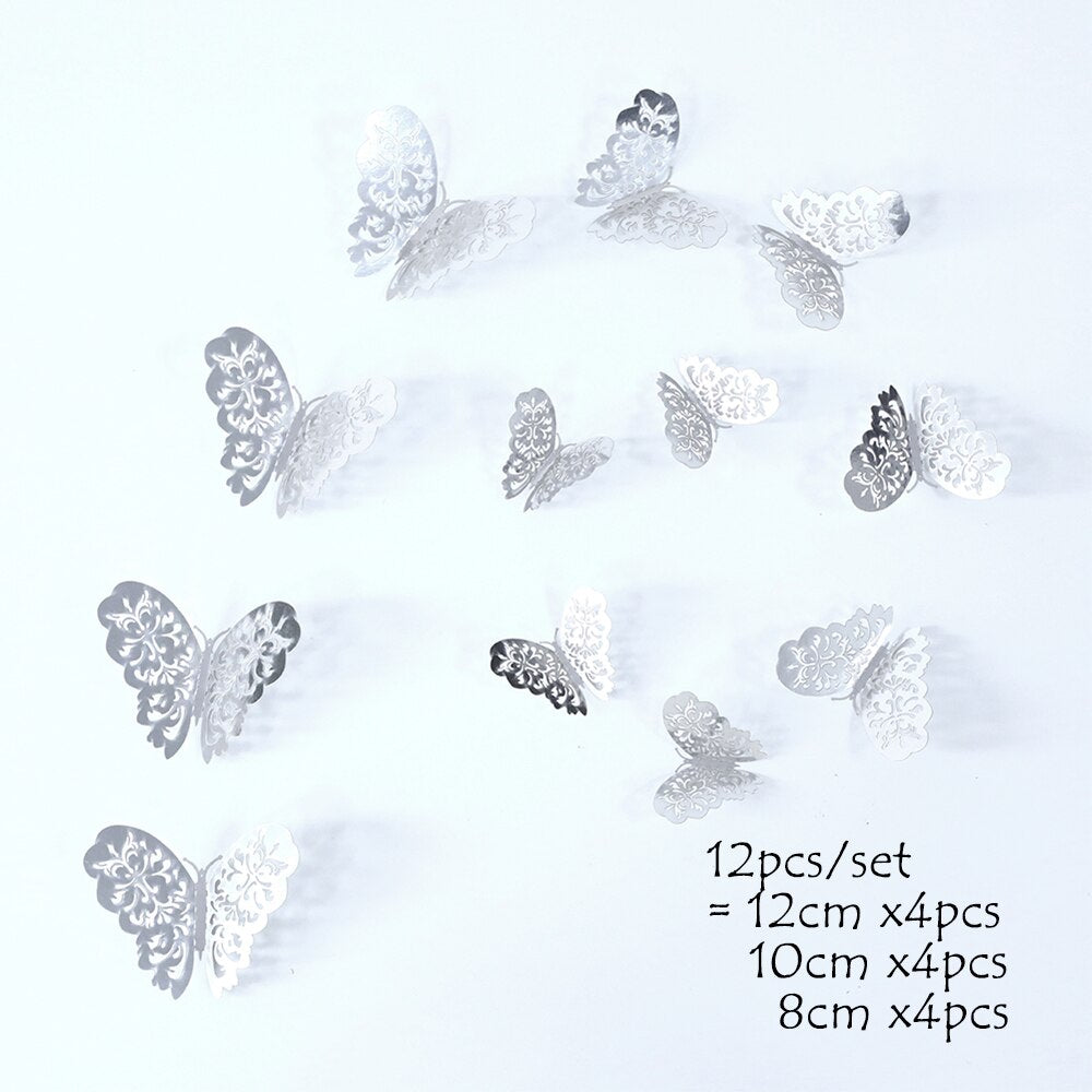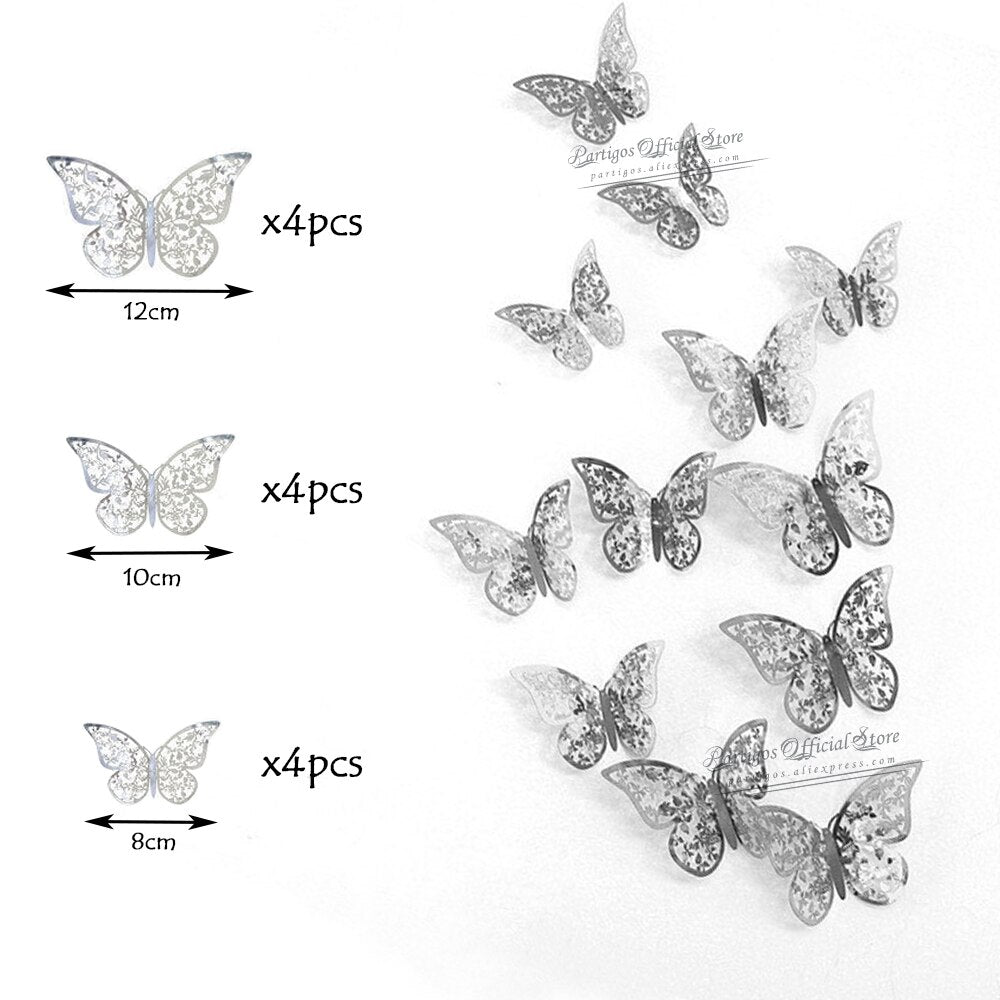 12Pcs 4D Hollow Vlinder Muur Sticker Diy Home Decoratie Muurstickers Bruiloft Bruiloft Decors Vlinder Kinderkamer Decors