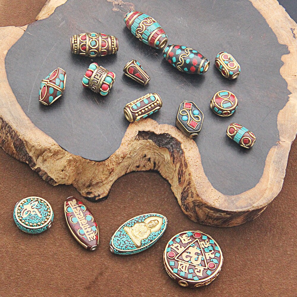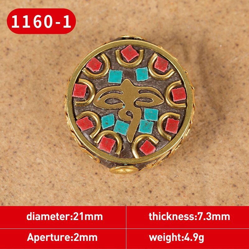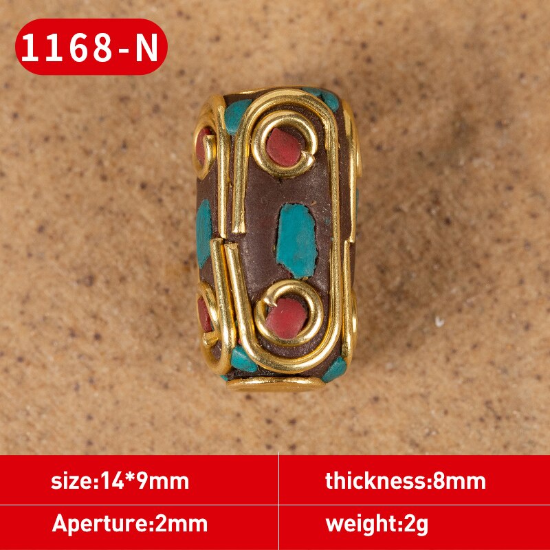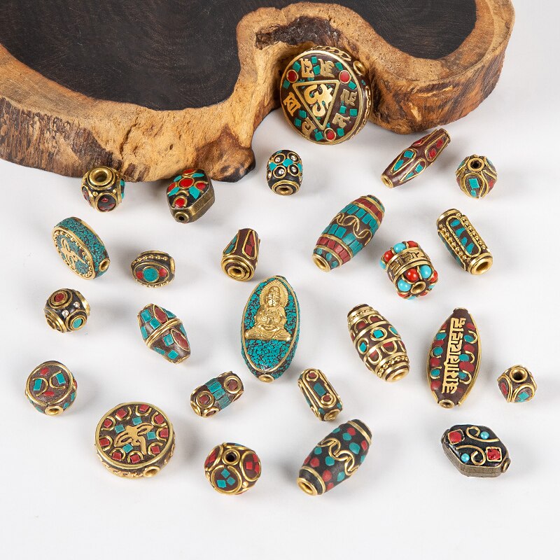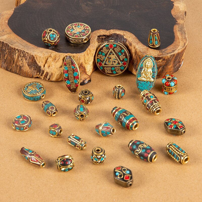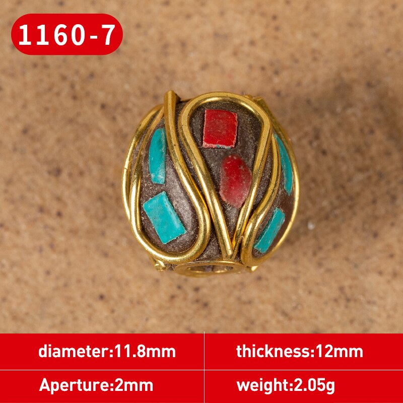 1Pc 15 Styles Retro Nepal Beads Handmade Red Coral Tibetan Bead Antique Golden For Jewelry Components Making DIY Bracelets