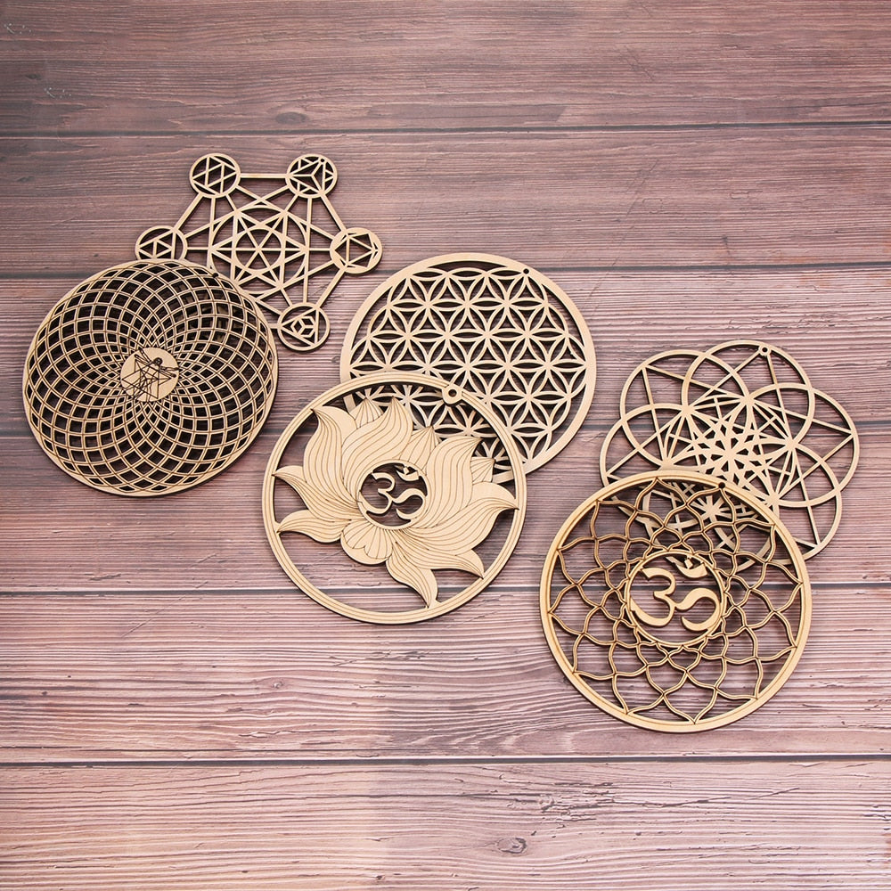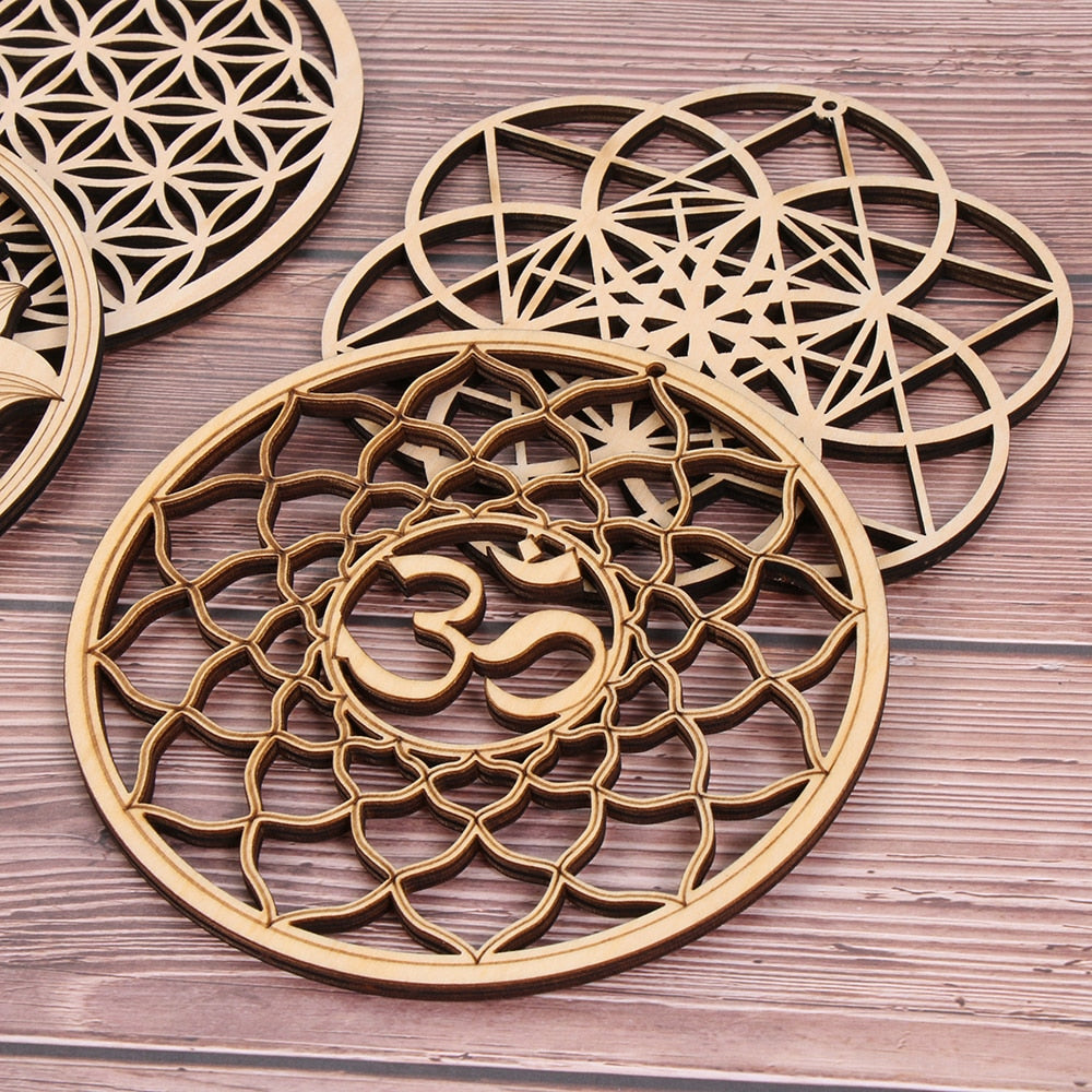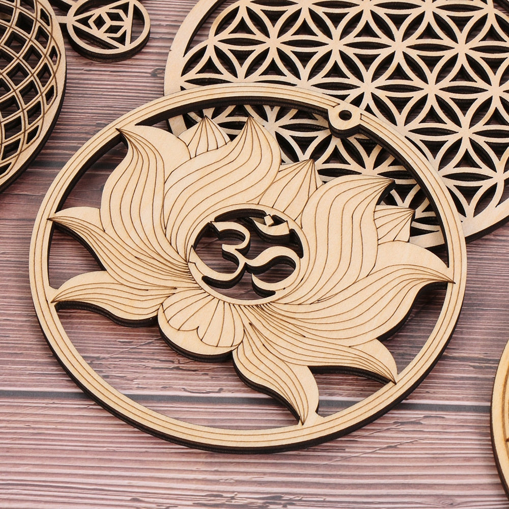 1PC Flower of Life Shape Wooden Wall Sign Laser Cut Non-slip Coaster Set Wood Placemats Table Mat Round Cup Pad Art Home Decor