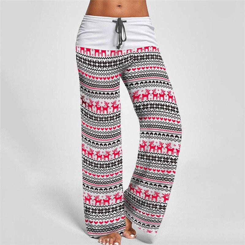 New Autumn Women Christmas Style Long Pants Vintage Print Casual Wide Leg Pants Streetwear Female Patchwork Loose Pant