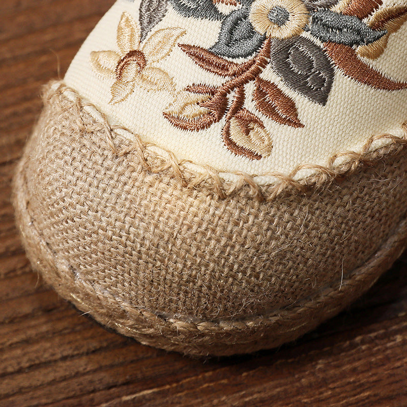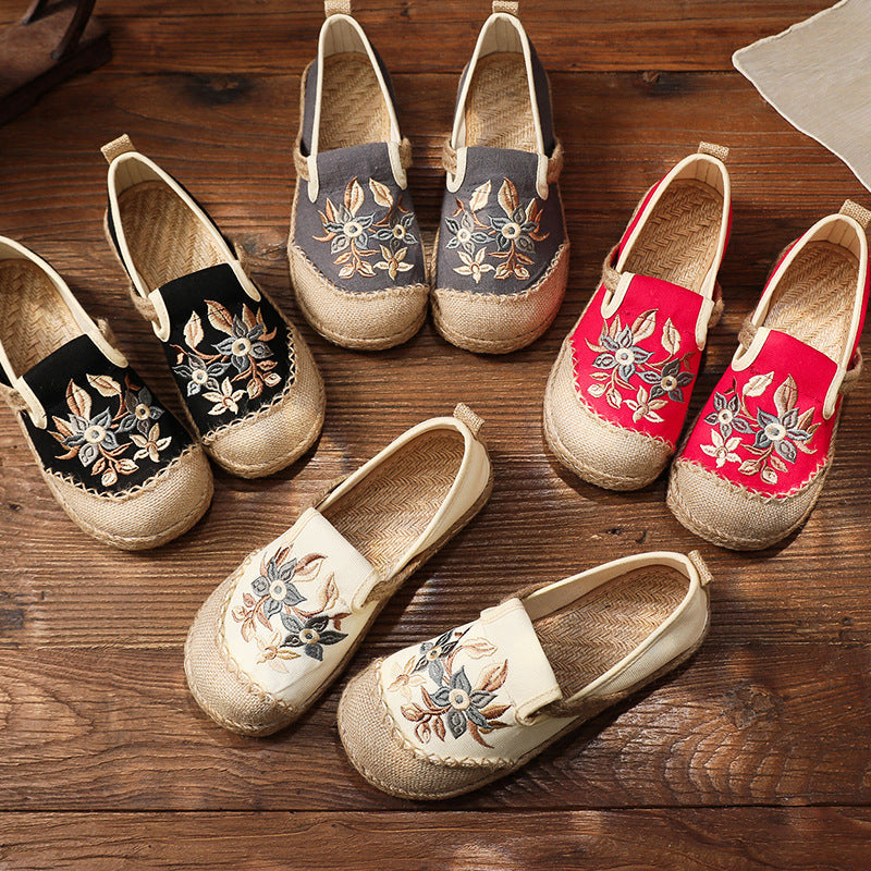 New Cloth Shoes Women's Hand Wrapped Hemp Edge PVC Soft Sole Overshoes Ethnic Style Shallow Mouth Embroidered Shoes