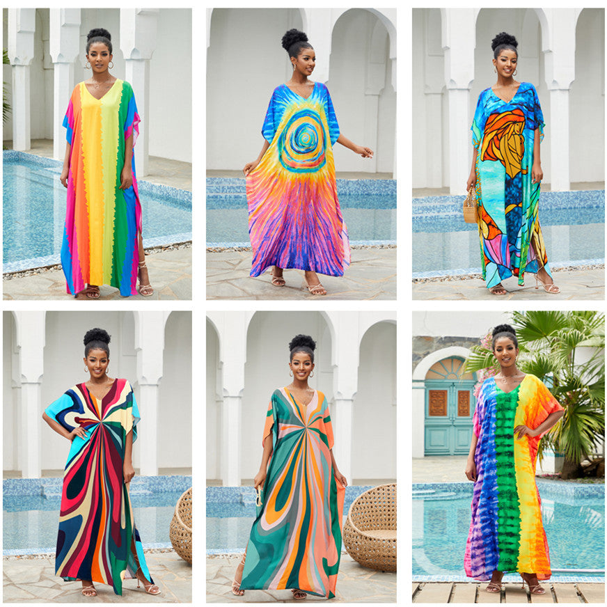 New Cotton Positioning Printed Beach Blouse, Robe-style Holiday Sunscreen Shirt, Bikini Outer Blouse