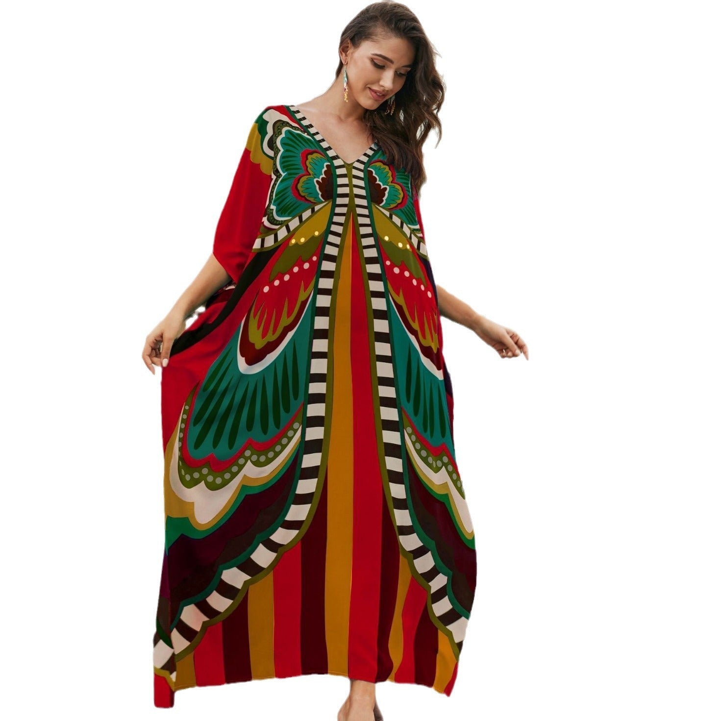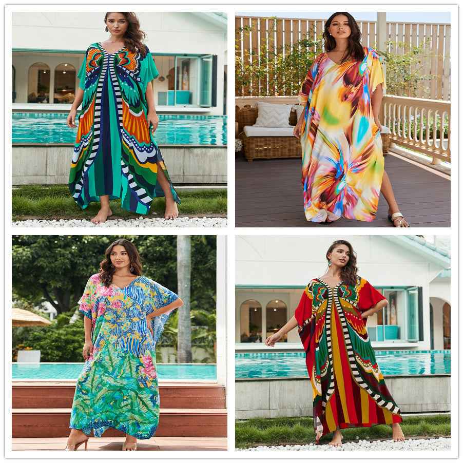 Cotton Printed Beach Cover Shirt Loose Robe Holiday Sunscreen Shirt Bikini Cover up