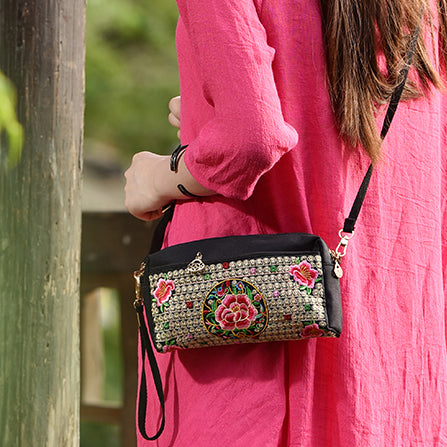 New Handheld Women's Bag Ethnic Style Embroidery Bag Embroidery Canvas Bag Cross Shoulder Bag Handbag