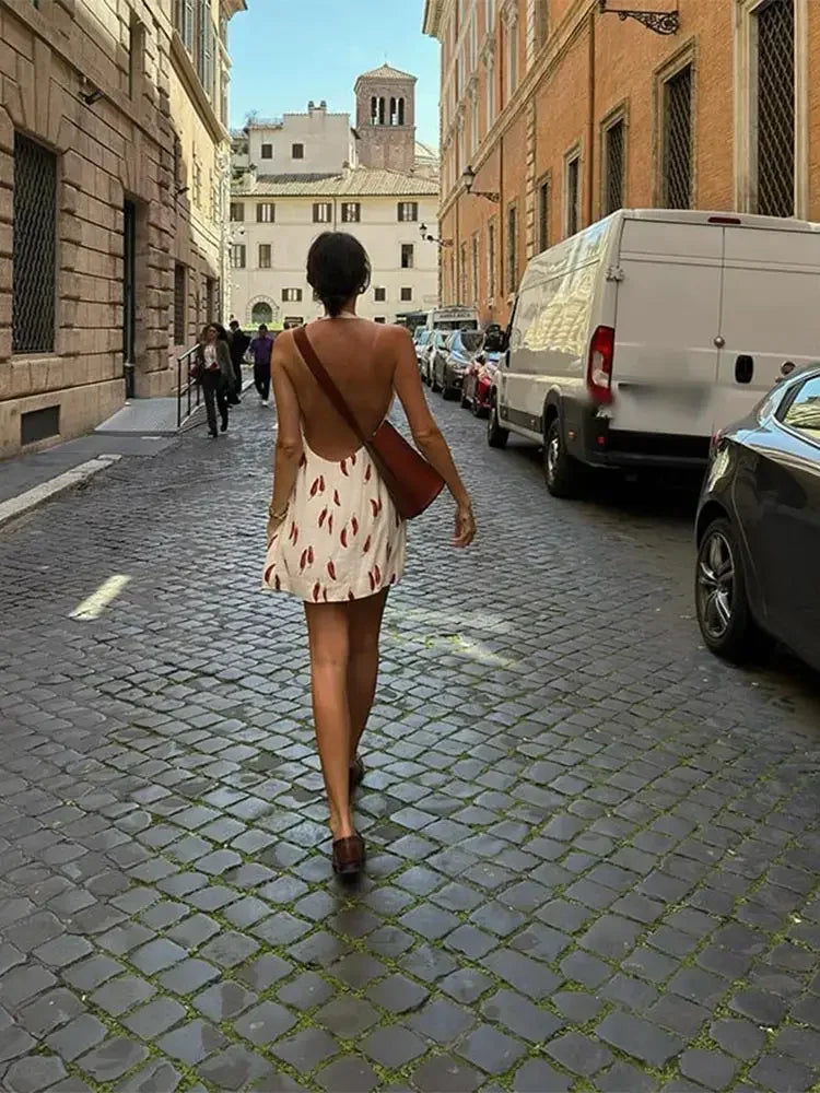 2024 Holiday Printed Backless Halter Mini Dresses Women Sexy Off Shoulder Sleeveless Dresses Summer Lady Vacation Beach Vestidos