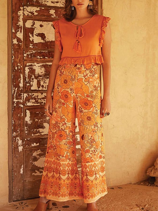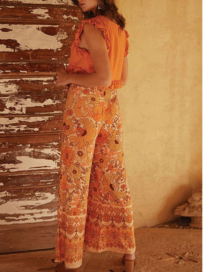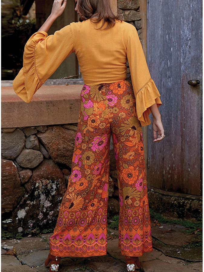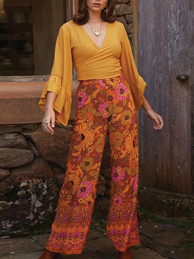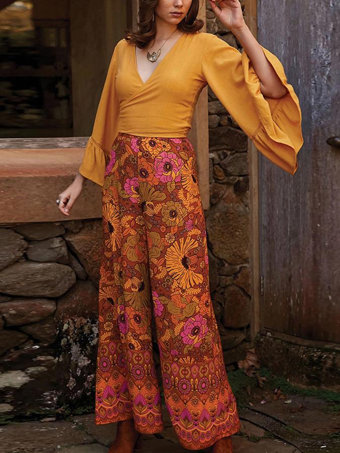 Autumn Broad-legged Slender Ancient Printed High-waist Bell Leisure Pants