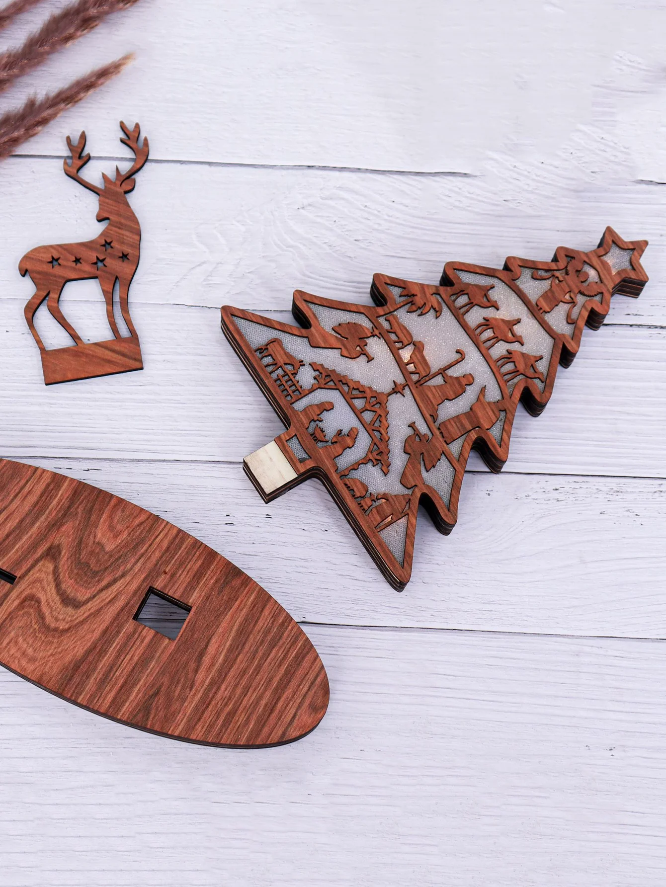 3pcs Christmas Tree Shape Luminous Wooden Nativity Scene Ornaments Elk Christmas Decorations Ornaments Party Decorations