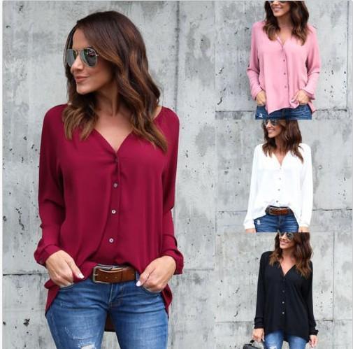 4 colors V-NECK Long Sleeve Solid color Women Shirt Cardigan