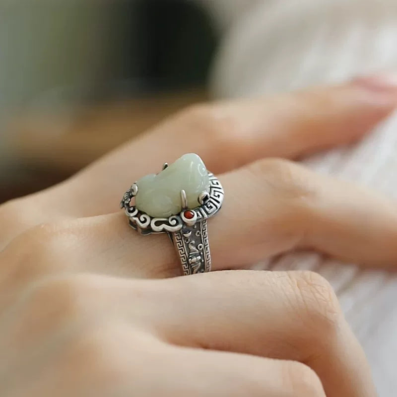 925 Silver Retro Classic Ethnic Style Lucky Ring Opening Adjustment Advanced Sense Versatile Ring