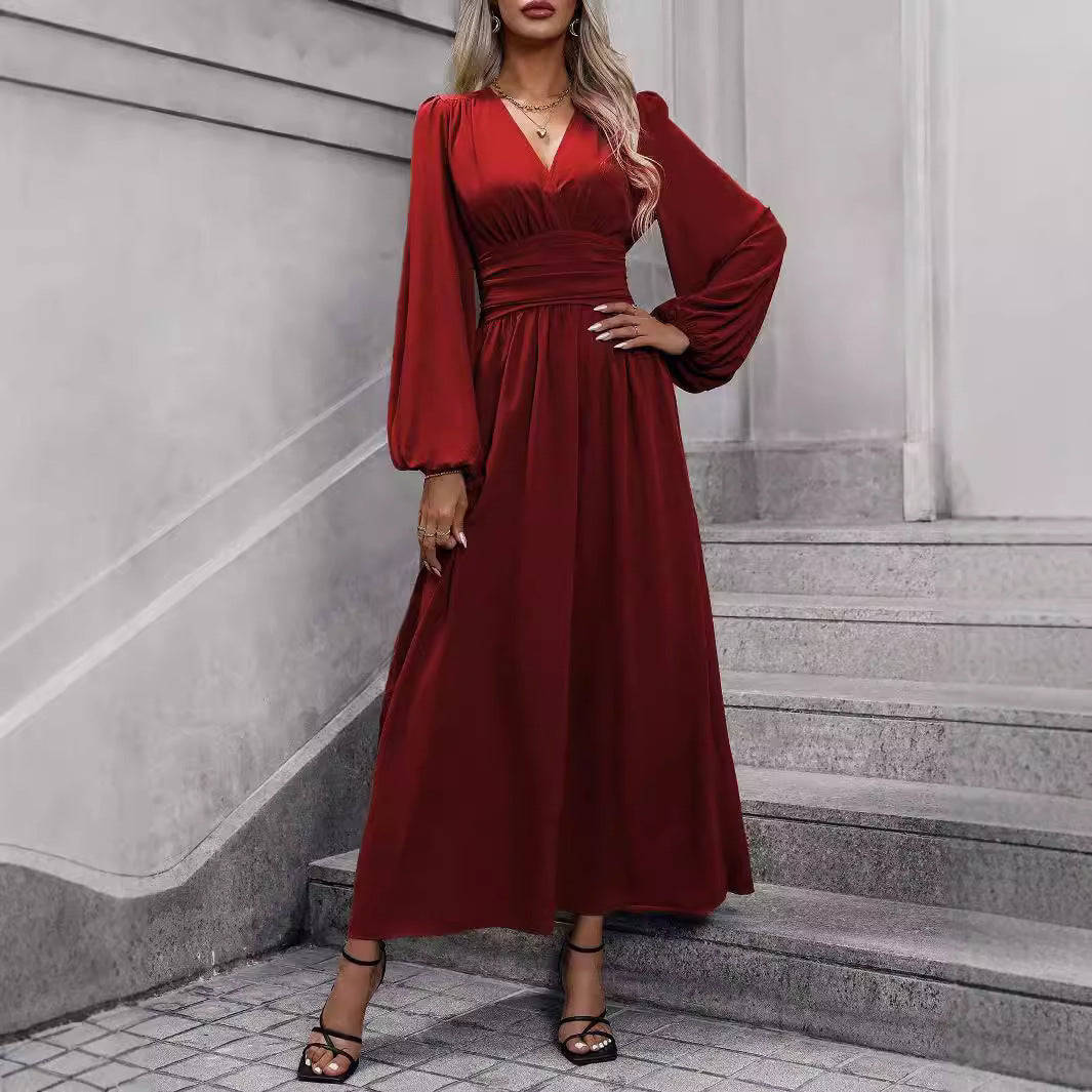Autumn and Winter New Women's Lantern Sleeves with High Split Ends Dress