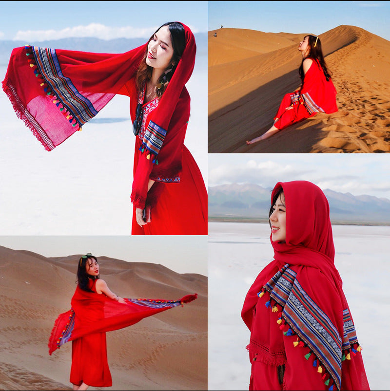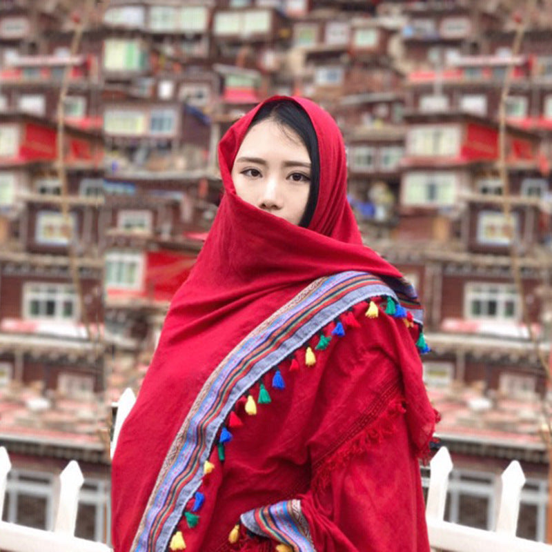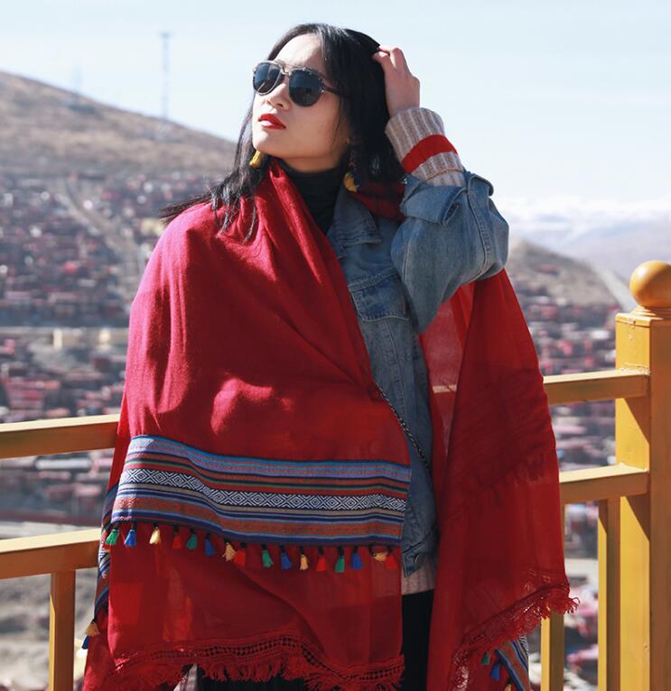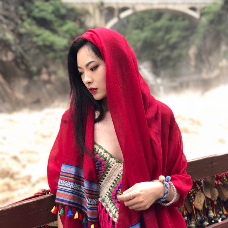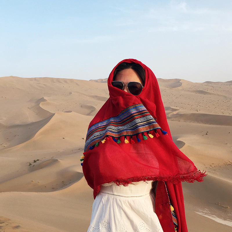 Sunscreen Ethnic Style Tibetan Shawl Cotton Linen Scarf Seaside Beach Towel