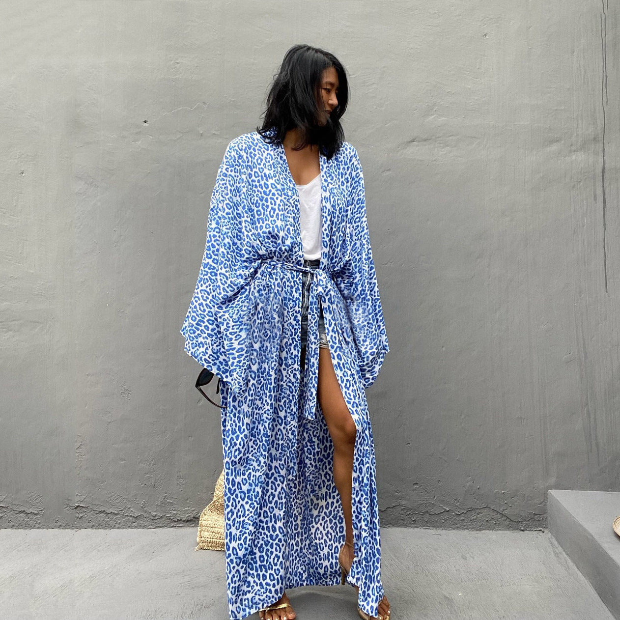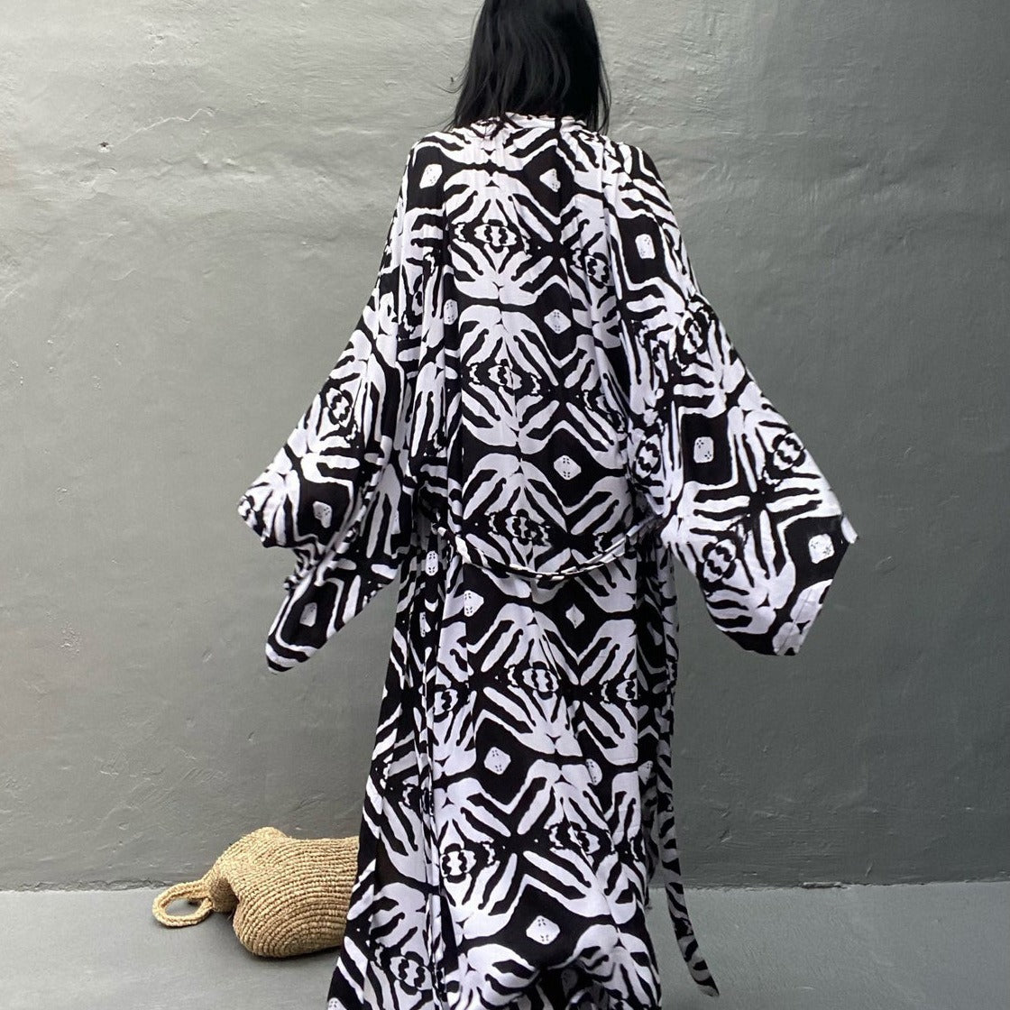 Beach Blouse Cotton Black and White Flower Vacation Sunscreen Cardigan Bikini Outer Blouse