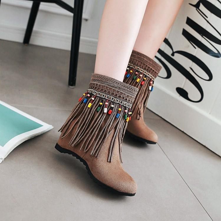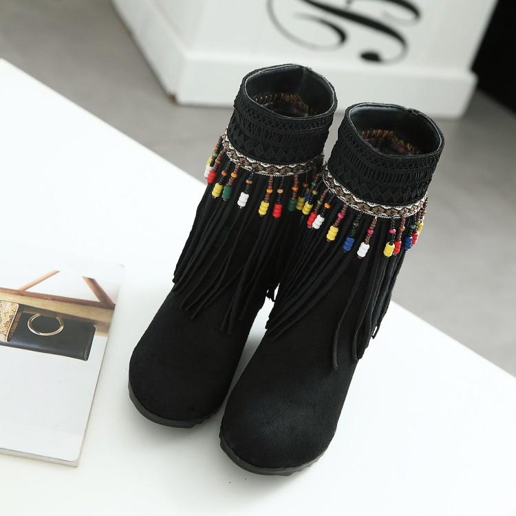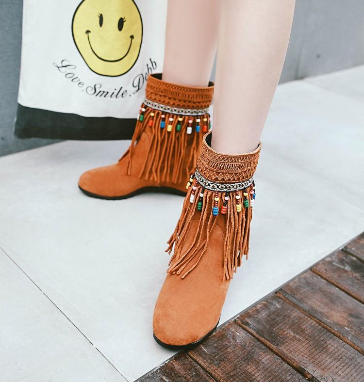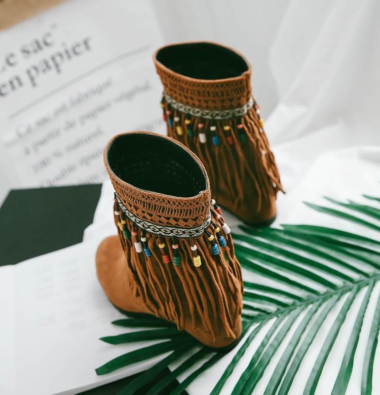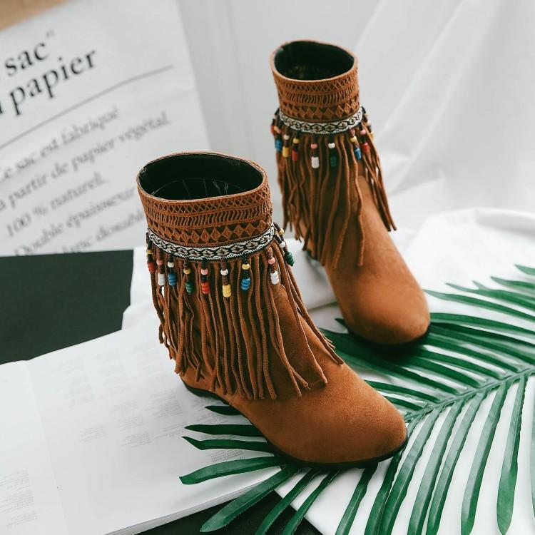 Tassel Beaded Roman Folk Style Hidden Heel Plus Size Short Boots