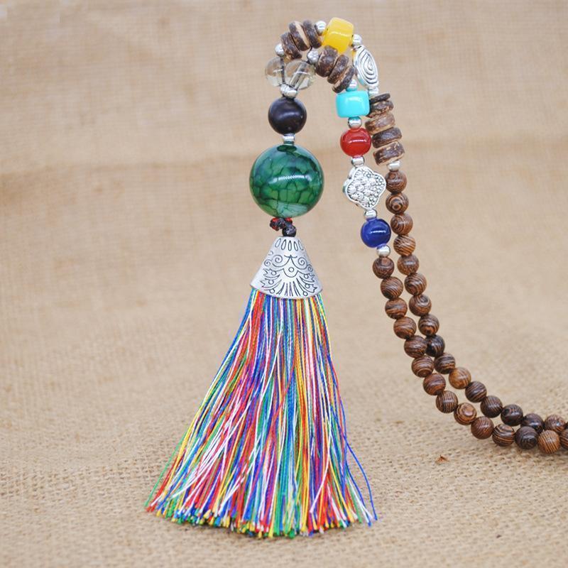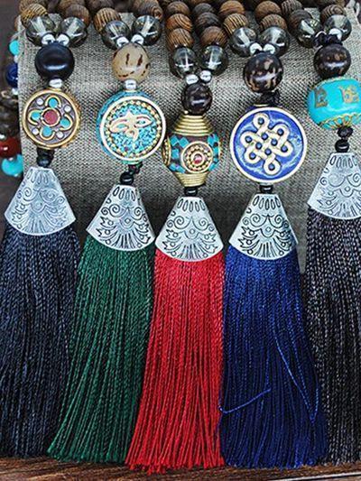 Literary Tassel Necklace Original Beaded Sweater Chain Hemp Cotton Accessories Ethnic Nepal Pendant