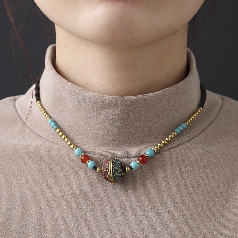 Tibetan ethnic style Nepal beads woven clavicle chain retro simple Joker fashion niche necklace