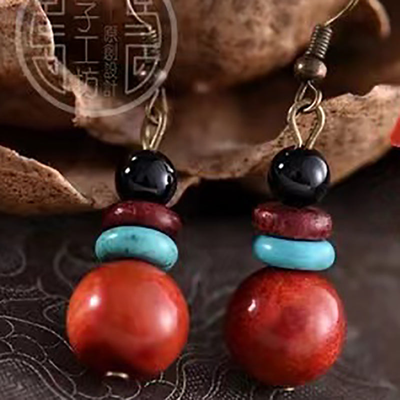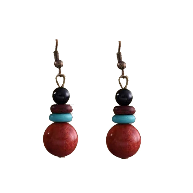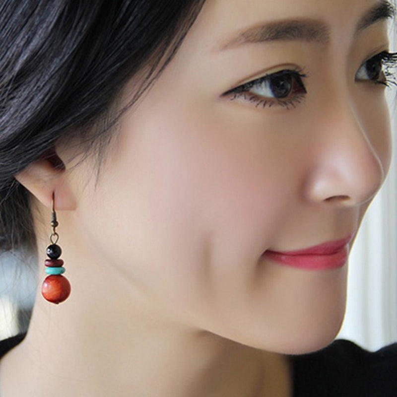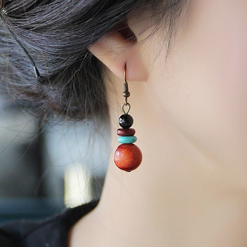 Bohemian Ethnic Style Wooden Bead Temperament Simple Retro Crystal Day Earrings