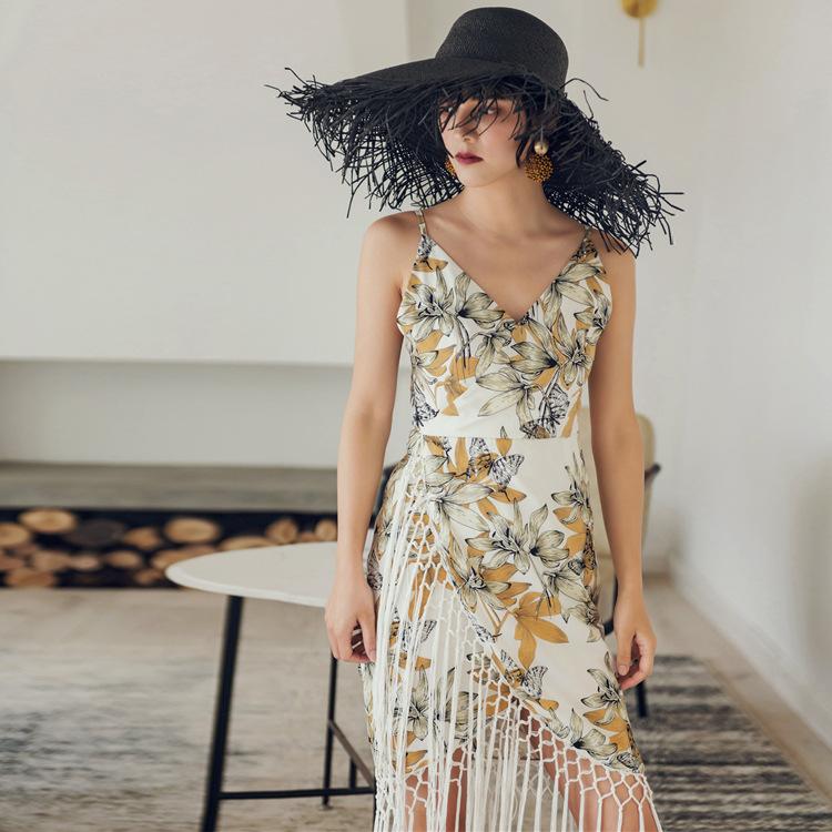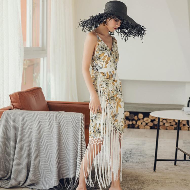 Bohemian Floral Fringe Sling Bag Hip Dress Midi Dress