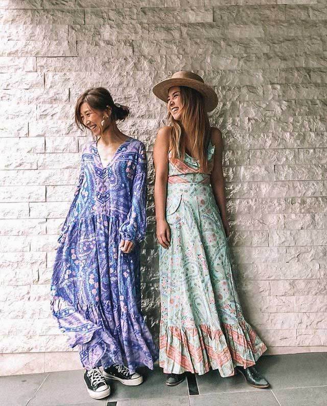 Bohemian Floral Long Sleeve V-neck Button Maxi Loose Dress