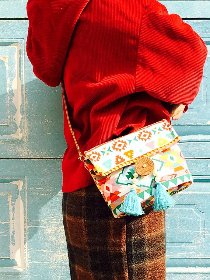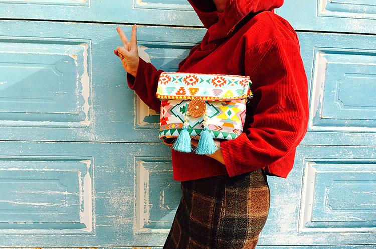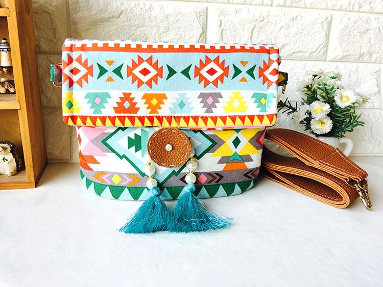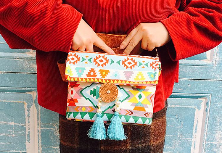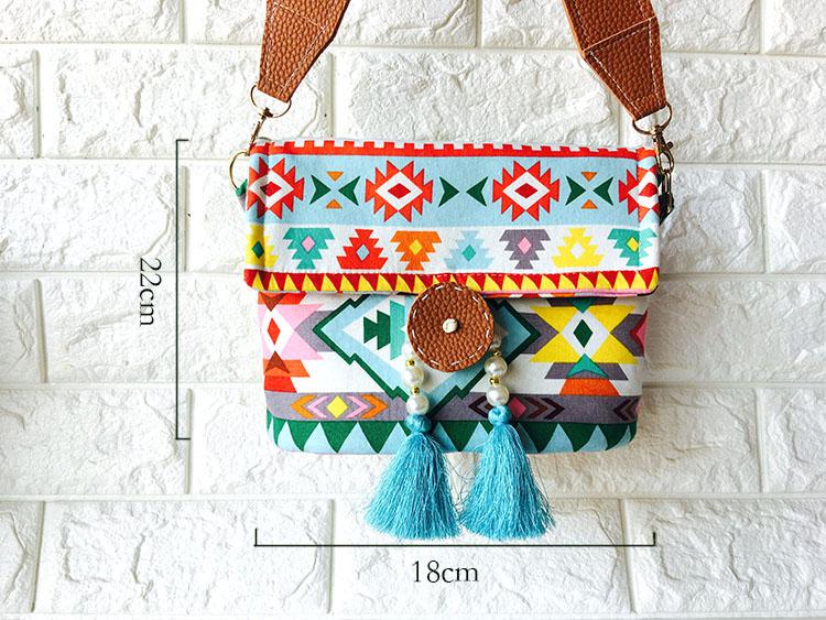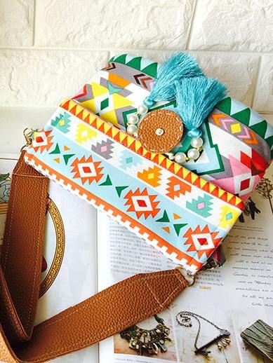Bohemian fringed wide shoulder strap geometric envelope bag crossbody bag