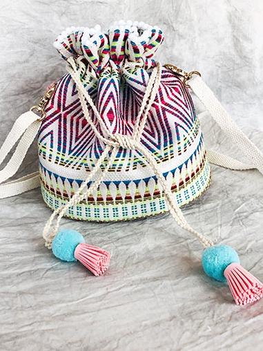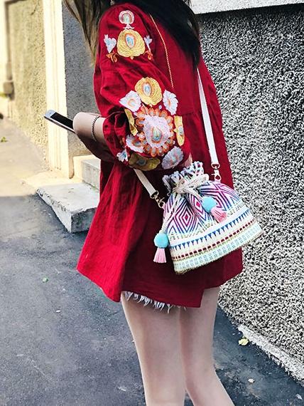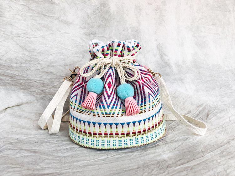 Bohemian holiday ethnic wind fabric weaving Messenger bag bucket bag