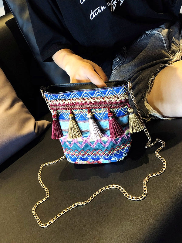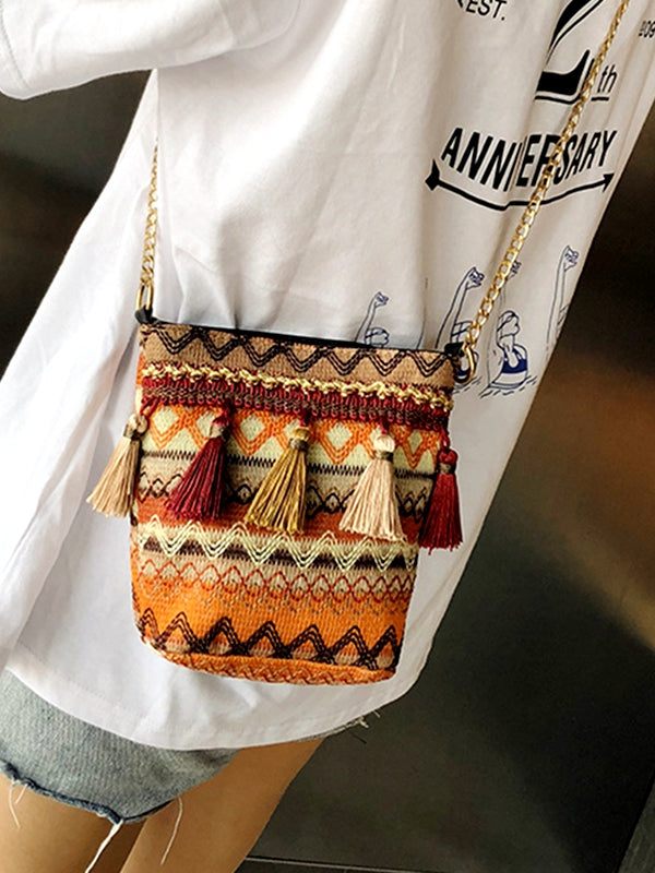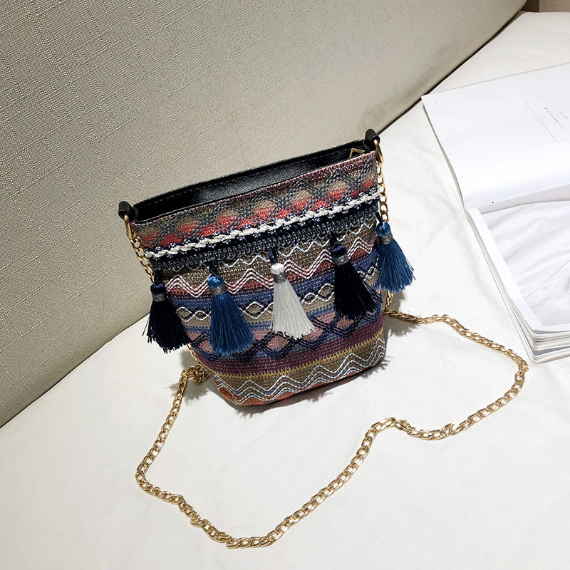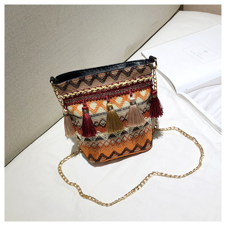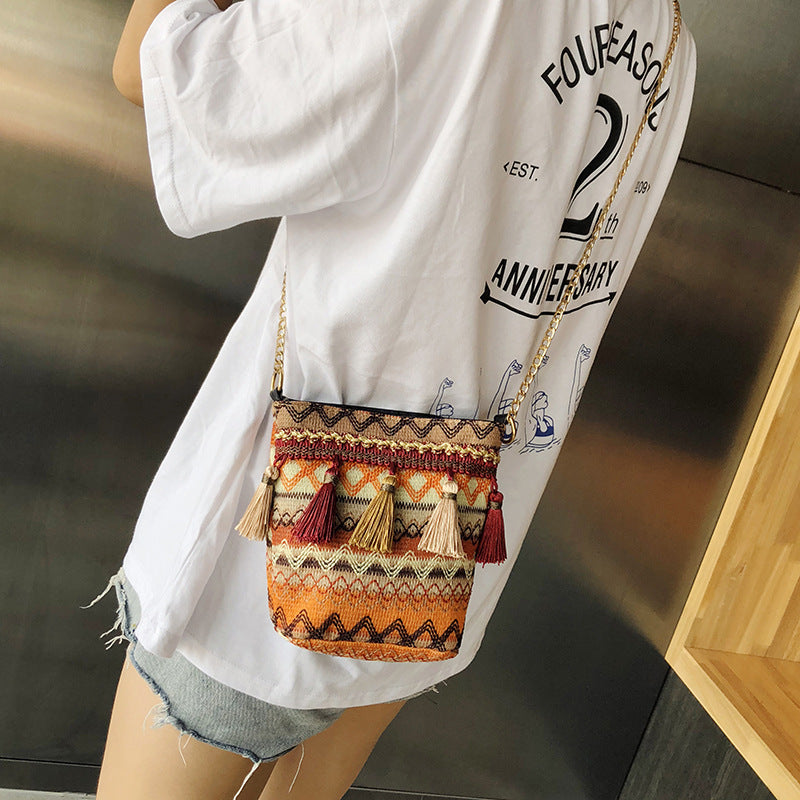 Bohemian New Ethnic Wind Woven Tassel Shoulder Messenger Bag Fashion Beach Straw Bag
