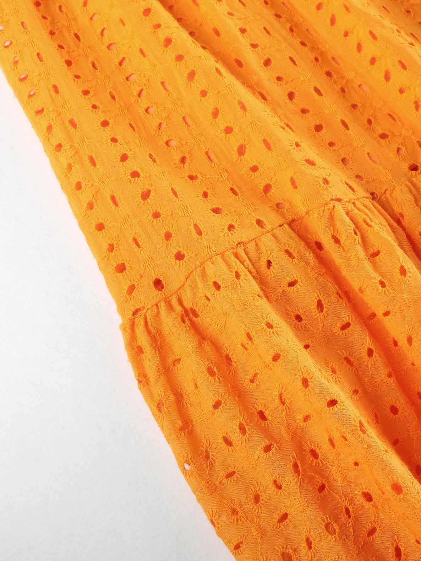 Bohemian Solid Hollow Out Elegant Women Dress O Neck Flying Sleeve Button Long Dress Summer Chic Casual Beach Women Clothing