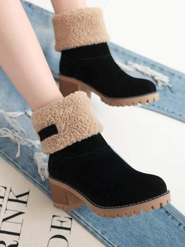 Brushed Thickness Solid Color Round Toe Flock Short Boots