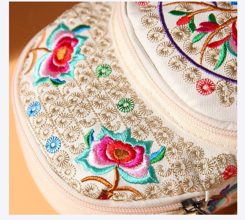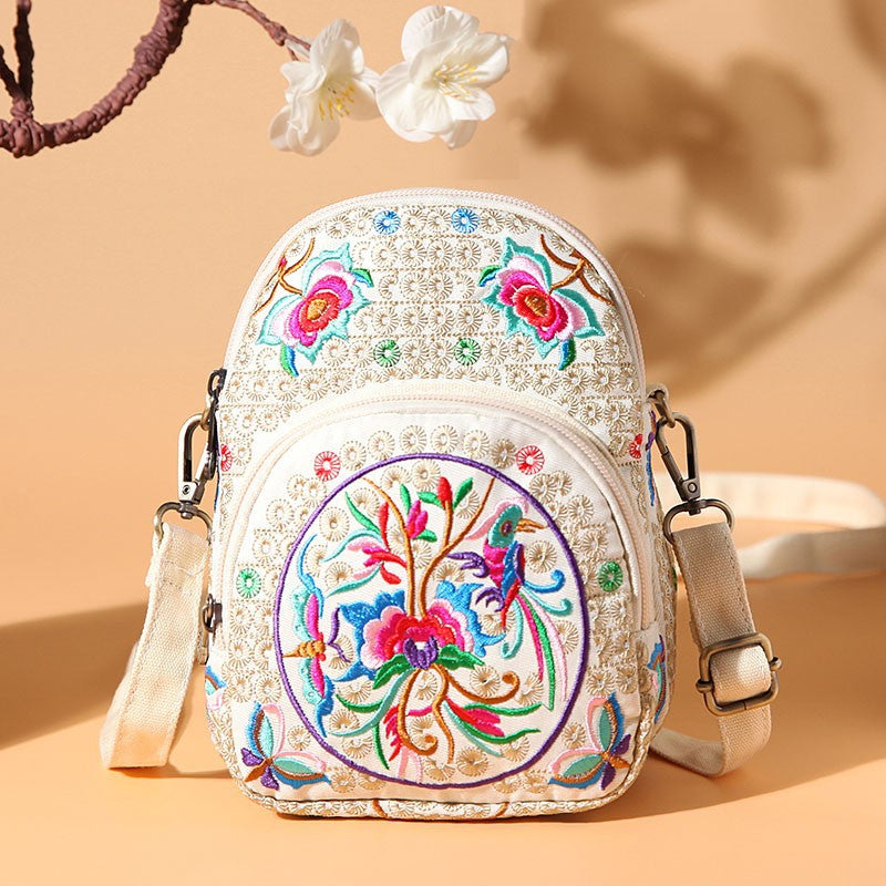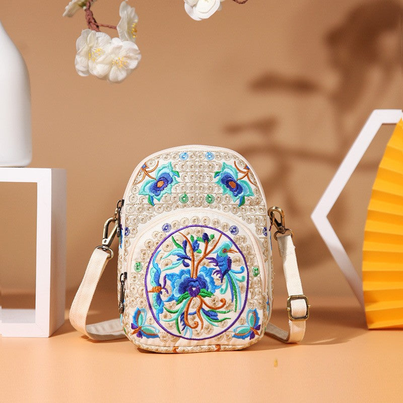 Embroidered Double-layer 7-inch Large-screen Mobile Phone Bag Crossbody Bag Female Canvas Small Bag